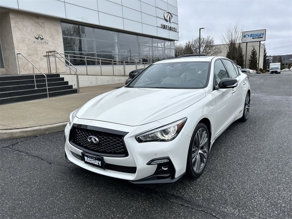 Recent Arrival! Certified. Majestic White 2023 INFINITI Q50 SENSORY Clean CARFAX. CARFAX One-Owner.